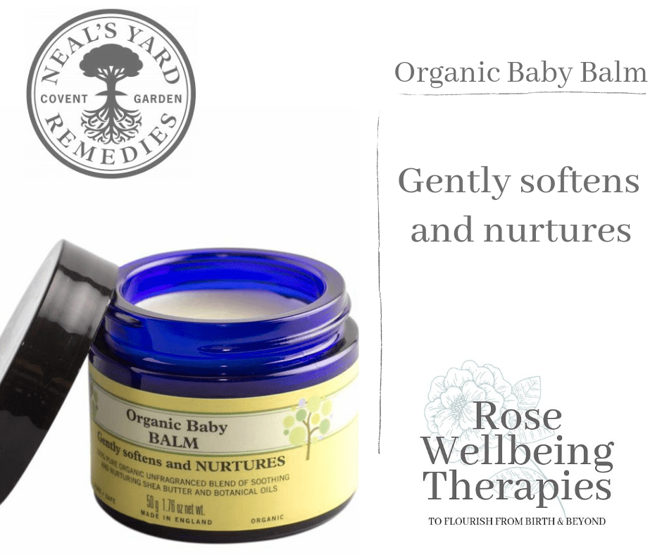 I was brave enough to do a little Neal’s Yard Christmas party in my home with family & friends but the idea of doing parties was not really for me so when I started Rose Wellbeing Therapies I discovered the amazing Mother & Baby range. This range includes organic ingredients safe for young skin and what better way to share these amazing products than with the parents I would be meeting in classes.